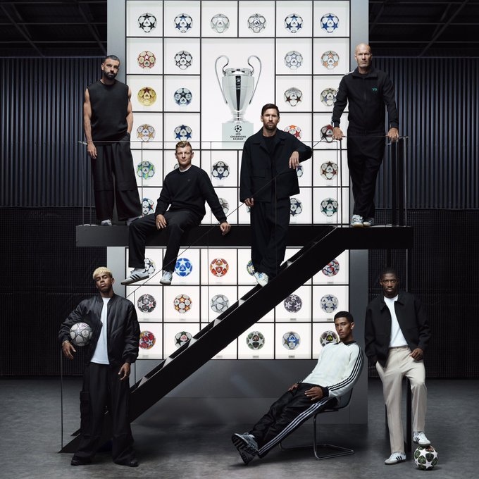阿迪达斯庆祝为欧冠设计并提供标志性比赛用球25周年,社媒发布纪念足球和海报,梅西、齐达内、萨拉赫、克罗斯、亚马尔、贝林厄姆、登贝莱在海报中出镜。