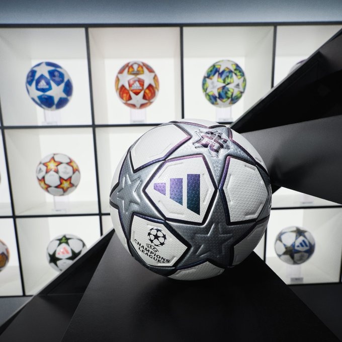 阿迪达斯配文:“二十五载,星光镌刻传奇。欢迎邂逅2026年欧洲冠军联赛纪念用球,一场对初代‘星辰’的现代致敬。”